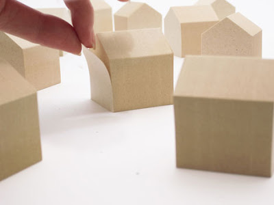 Architects Jun Inokuma and Yuri Naruse create paper from construction wood waste and form it into these little house-shaped pads of sticky notes, transforming the wood material into a functional, iconic representation of its original intended form. Genius! Via Swissmiss.